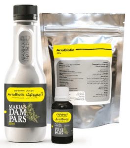 آریوبیوتیک(Ariobiotic) اولین آنتی بیوتیک گیاهی جهان که دارای گواهی ثبت پتنت بین المللی می باشد. این آنتی بیوتیک گیاهی بر پایه ترکیبات موثره گیاهان مرزه، آویشن باغی، مرزنجوش و زنیان فرموله شده و تحت ضوابط GMP تولید می گردد. آریوبیوتیک به عنوان یک آنتی بیوتیک وسیع الطیف عمل کرده و قادر به درمان عفونت های باکتریایی گرم مثبت و گرم منفی خواهد بود. این دارو برخلاف آنتی بیوتیک های شیمیایی باقیمانده های مضر، موتاژن یا تراتوژن در تولیدات حیوان بجای نمی گذارد.
